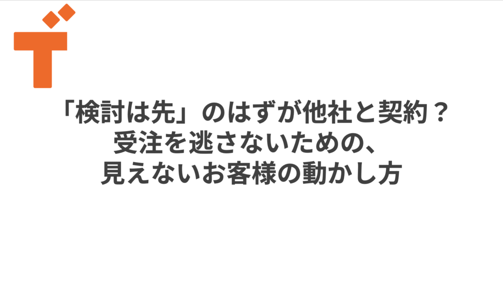 「検討は先」のはずが他社と契約?受注を逃さないための、見えないお客様の動かし方