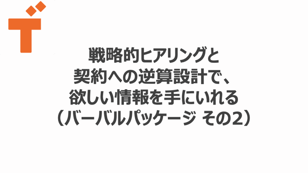 戦略的ヒアリングと契約への逆算設計で、欲しい情報を手にいれる(バーバルパッケージ その2)