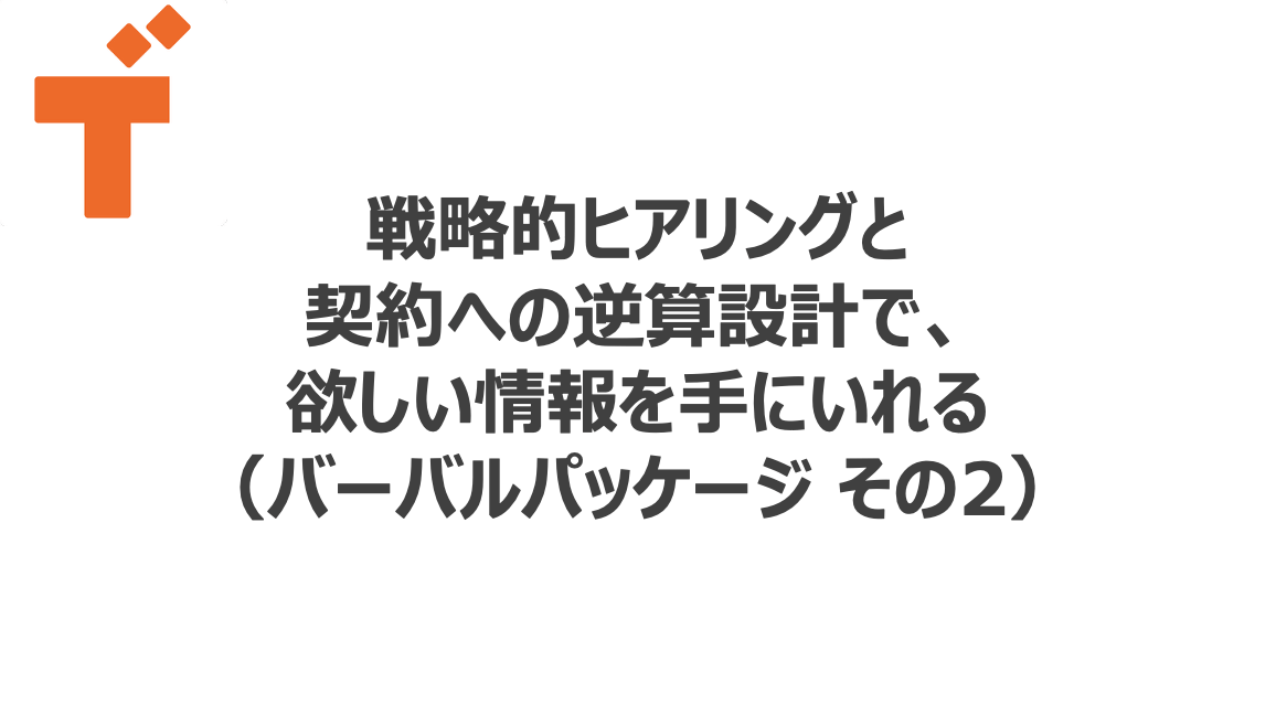 戦略的ヒアリングと契約への逆算設計で、欲しい情報を手にいれる(バーバルパッケージ その2)