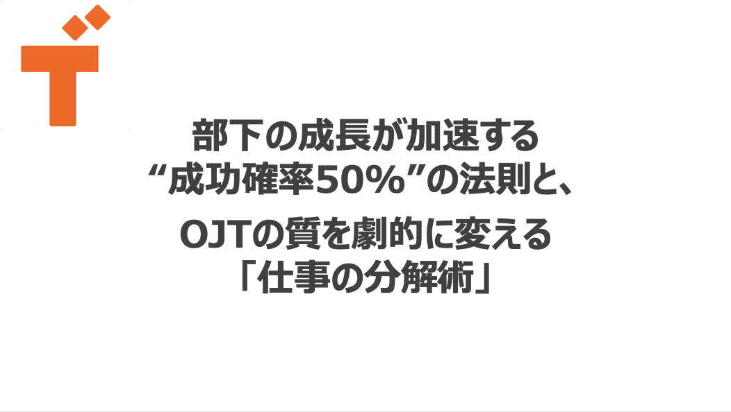 部下の成長が加速する“成功確率50%”の法則と、OJTの質を劇的に変える「仕事の分解術」