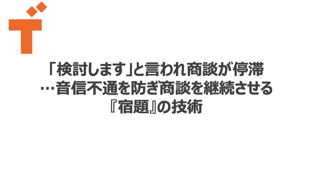 「検討します」と言われ商談が停滞…音信不通を防ぎ商談を継続させる『宿題』の技術