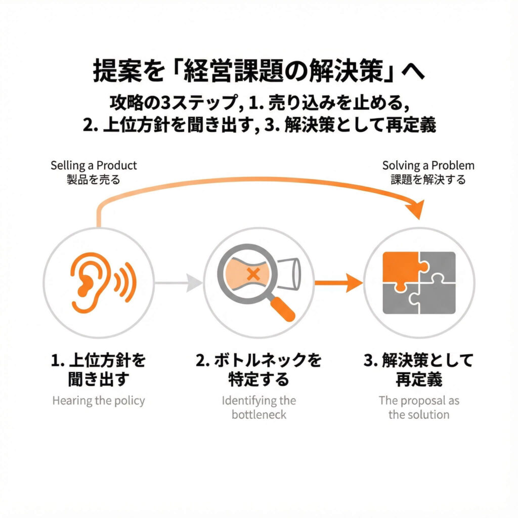 決裁者が関心があるのは、商品のスペックではなく「経営課題が解決するかどうか」だけだからです。