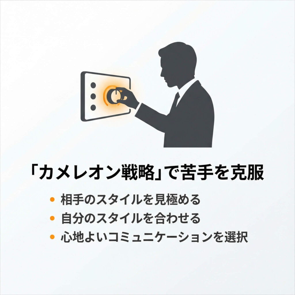 • 結論: 自分の「苦手なタイプ」を自覚し、カメレオンになりきってください。