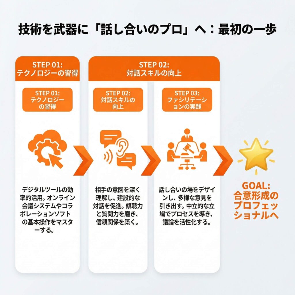 「ファシリテーションなんて難しそう」と感じるかもしれません。でも大丈夫です。これは特別な才能ではなく、練習で身につく技術です。